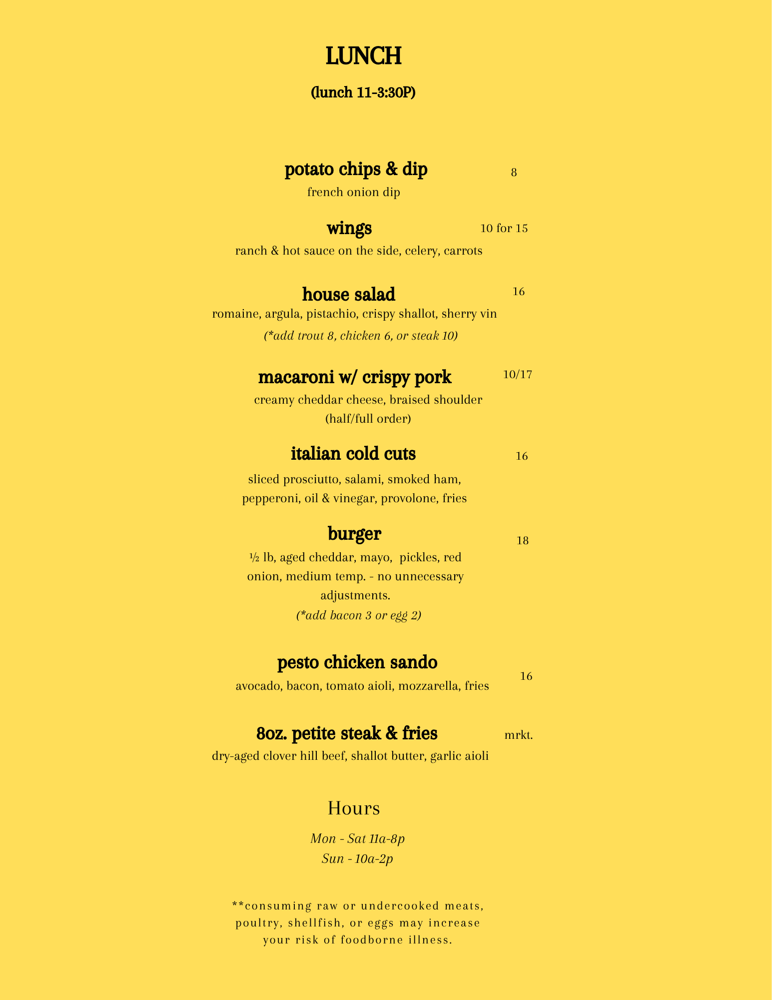 Also…dinner (like proper dinner) Mon - Sat 5p-8p